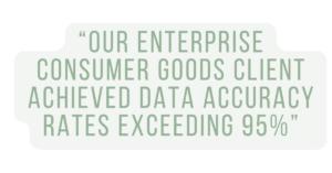 At eSage Group, we’ve witnessed firsthand the transformative power of AI in cleaning up our Clients’ data. By leveraging AI to predict missing data and integrating third-party data sources, we helped our Enterprise Consumer Goods Client achieve data accuracy rates, in some cases exceeding 95% on over a quarter of the models tested.
